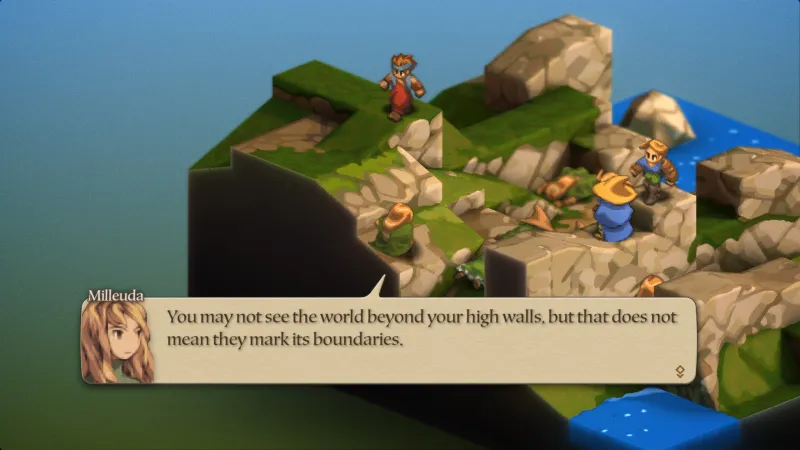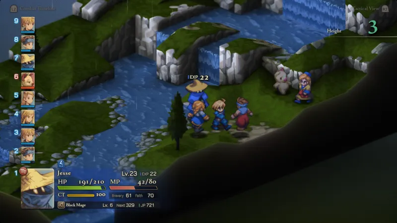 One of my favorite parts of Final Fantasy Tactics, preserved so well here, is the map design itself. Each battle map spins like a diorama, set against a gradient void. While there are a few flat, sprawling fields, Tactics quickly introduces new elements to force the player to alter their approach. There were still several times I would have trouble lining up units, squares, and spells in particularly dense or vertical maps, even with the overhead camera.