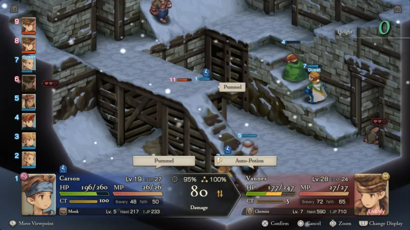 Several quality-of-life updates make The Ivalice Chronicles more approachable for newcomers, though. It was easier than ever to map out my job progression, look for specific items to buy, or even restart a battle if the first few turns went poorly. The new UI also makes it easy to glance and see who’s moving next, or where a spell’s delay will put its caster in the turn order. The menus can feel cumbersome at times though; it took a while to build up the muscle memory for getting to the Job screen, learning new abilities, then making sure they were part of my arsenal before a fight.