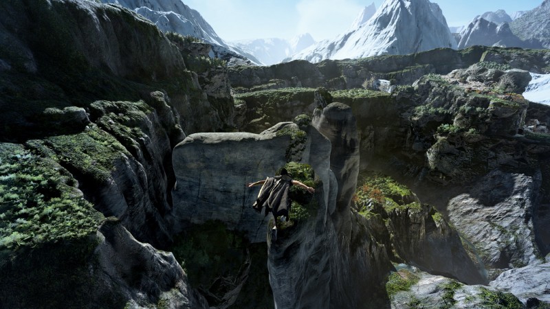 “We wanted to ensure that people were able to fully enjoy the magic parkour action, so the open world is built around that concept,” Terada says. “We first started off by testing out how the magic parkour feels and the controllability and playability of that as far as the speed and elevation differences and jumps between different terrains and heights and so forth.” The team made sure to focus on that early in development and then built the world specifically to take advantage of the movement abilities they created for Frey.