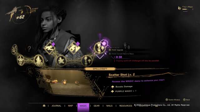 Frey’s skill trees give you access to a wide range of spells, but you won’t always like what you purchase. Those little preview clips can be deceiving at times. You can convert bought spells back into Mana, essentially refunding them. This can be done for all the non-mandatory spells that you choose to obtain and the refund is an equal exchange, meaning you won’t lose any Mana if you change your mind about a purchase. Open up the Magic menu and hold the Convert prompt over a spell to get that refund.