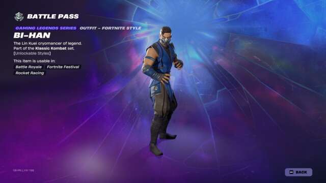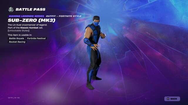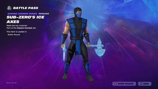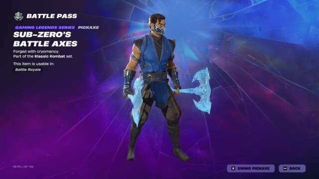 The highlight, no doubt, is the lone collaboration on the battle pass: Sub-Zero from the fighting game series Mortal Kombat. There are eight distinct characters included in the reveal, so this should be every skin in the battle pass. Keep in mind, however, that all of them will have at least one alternate style. So, for example, we’ve got Sub-Zero in his classic blue look here, but we can expect at least one of his many other looks as well–there are way too many potential options to choose from, so we won’t bother guessing.