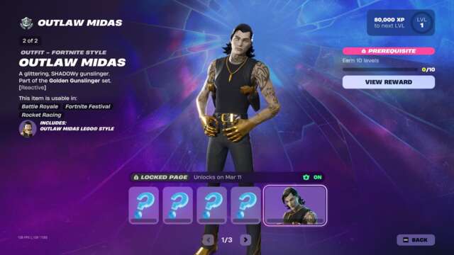 Not everything in the battle pass has been shown yet, however. This season’s bonus skin is Outlaw Midas, whose set of cosmetics and additional styles haven’t yet been revealed–likewise, we haven’t seen this season’s super styles yet.