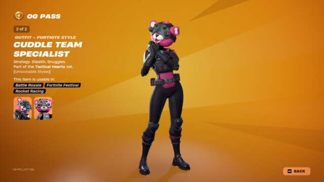 After spending a couple months hanging out in the season that started it all, the Fortnite OG experience is finally moving on to Season 2. And, just as in December, Season 2 introduces a new OG Pass that includes remixes of two battle pass skins and one shop skin that first appeared way back when this season happened the first time–we’ve got new versions of Cuddle Team Leader, Sparkle Specialist, and Black Knight, along with multiple style options and full sets of cosmetics for each of them.
