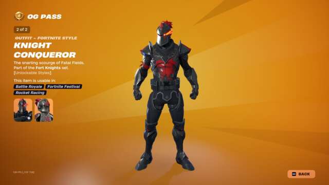 While Sparkle Diva and Knight Conqueror skins are certainly inspired by skins that were only ever obtainable from the original time-limited Season 2 battle pass that launched in 2017, they aren’t identical. There was some hope, after the return of the Season 1 shop with Renegade Raider, that the proper Season 2 battle pass might return with OG Season 2. If Epic ever manages a justification for bringing back old battle pass cosmetics, it clearly will not be by simply re-selling those passes in full.