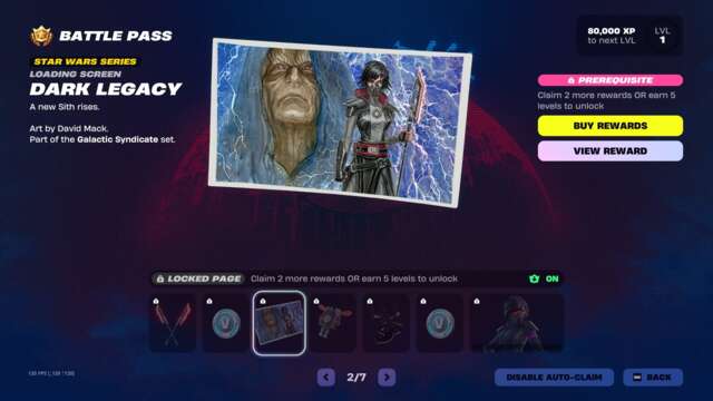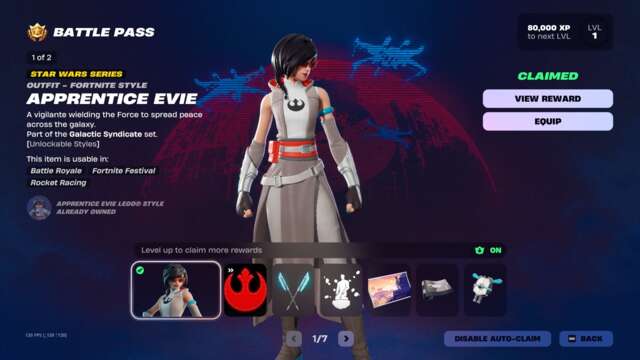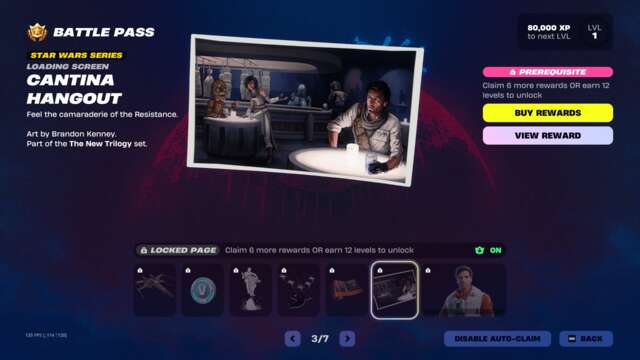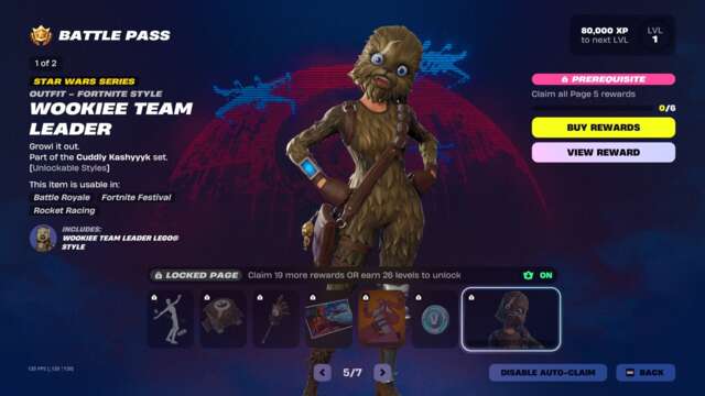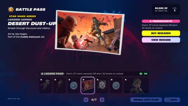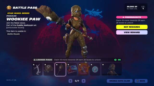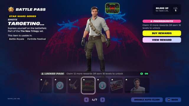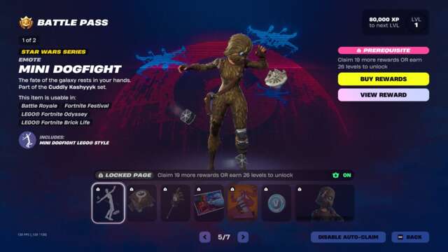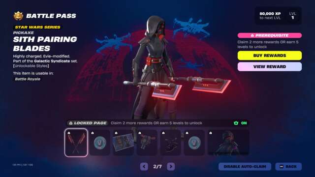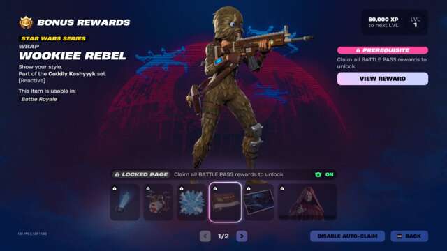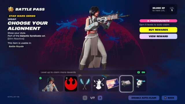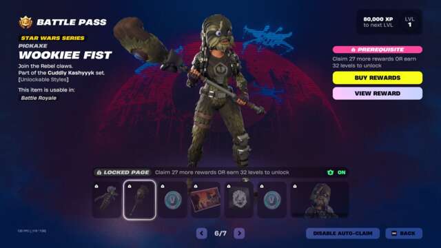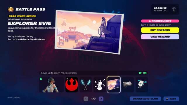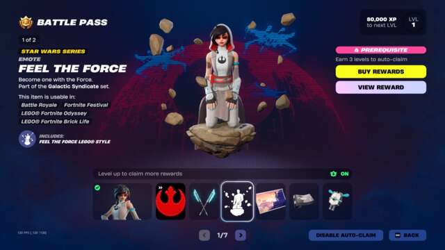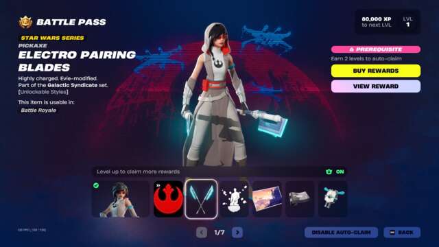 Fortnite‘s first-ever Star Wars season has now begun, and with it we’ve got a new battle pass full of Star Wars skins and cosmetics. It’s not really a full battle pass, however, as this season lasts only five weeks–accordingly, the pass is shorter, similar to the passes from the original Fortnite OG season and Chapter 2 Remix. So we’ve got 50 tiers of rewards in the main pass (including 1000 V-Bucks), 10 tiers of bonus rewards, and, unlike those previous two short seasons, there’s also a bonus skin, with its own set of cosmetics. The pass will run you 1000 V-Bucks to buy, and it’s included with a subscription to Fortnite Crew.