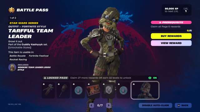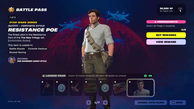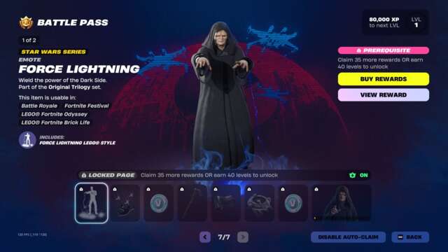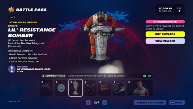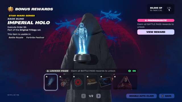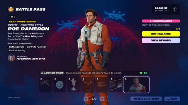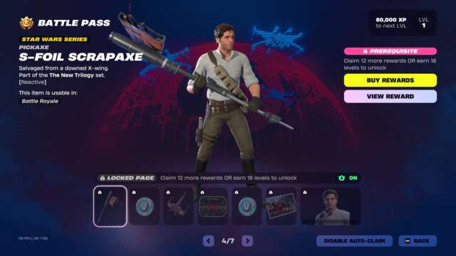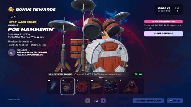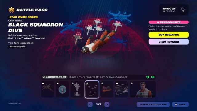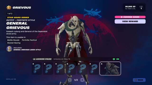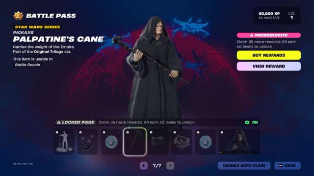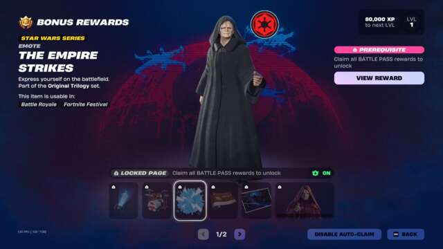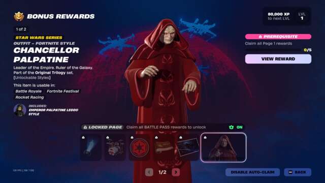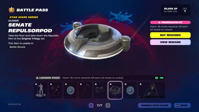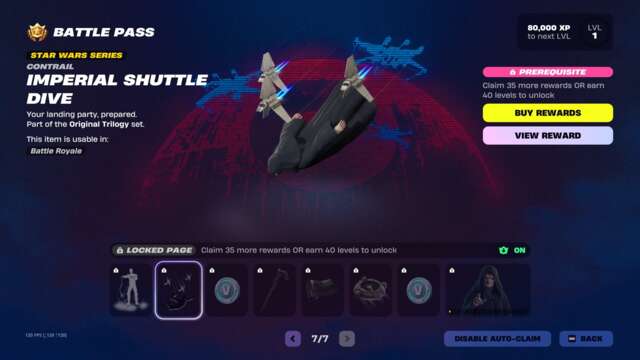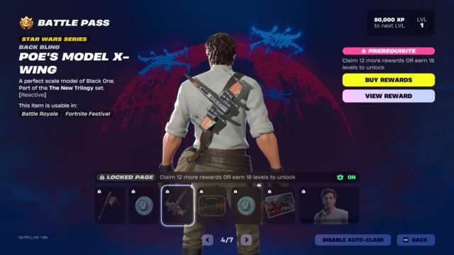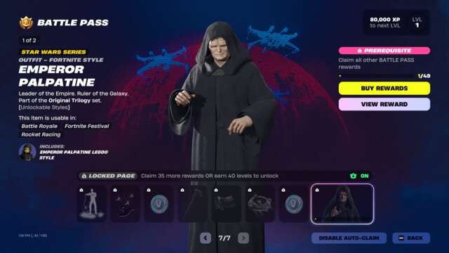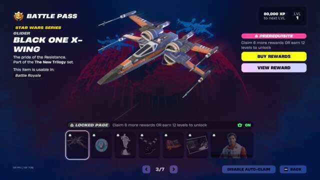 Aside from the skins, the best stuff on the pass may be the gliders–we get a new X-Wing glider with Poe, and one of those floating senate pods for Palpatine. There’s still plenty on the pass that’s still unrevealed, however. Specifically, the second page of the bonus rewards, where we expect the super styles to be, remains hidden, as does General Grievous’s entire set of cosmetics.