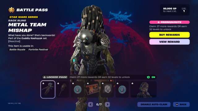 The main highlights are, without a doubt, the three Star Wars characters on the battle pass: Poe Dameron and Emperor Palpatine in the main part of the pass, and the bonus skin General Grievous. The two other skins on the pass are mashups–one is Evie from the Chapter 3 Season 2 battle pass reimagined as both a Jedi and Sith apprentice, and the other is a new mascot skin called Wookiee Team Leader.