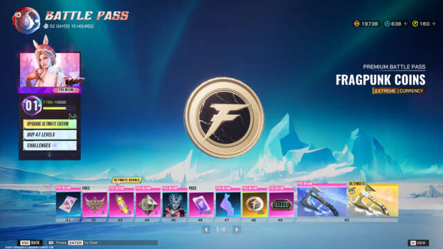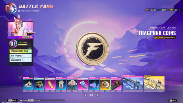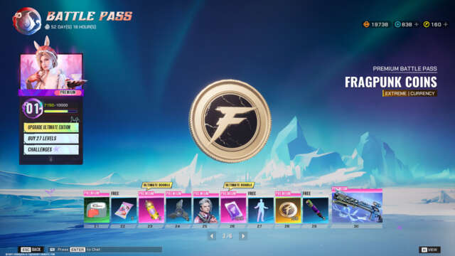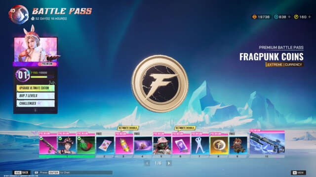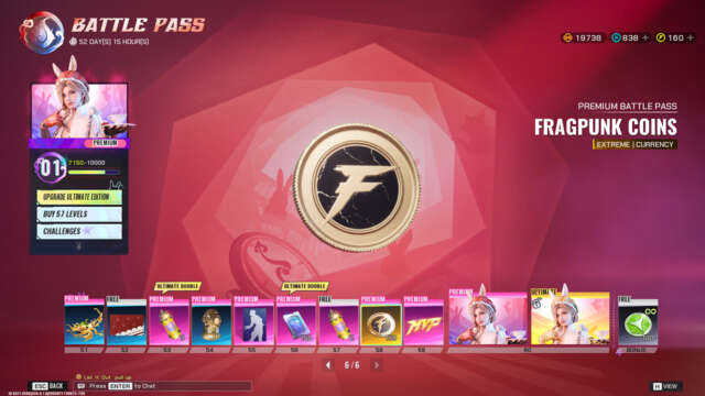 Like most multiplayer shooters, FragPunk has a battle pass you can purchase and progress through. Just like NetEase’s Marvel Rivals, FragPunk’s battle passes don’t expire, even after the season ends. There are 60 tiers of free and premium rewards, including weapon and character skins, plus currencies for more skins. There are also canisters, FragPunk’s equivalent of loot boxes, which give random rewards. The premium versions cost 900 coins ($10 USD), and there is an ultimate version of the battle pass that costs 2,500 coins ($25), which includes exclusive recolors of battle pass skins and double rewards for certain tiers, like the canister rewards.