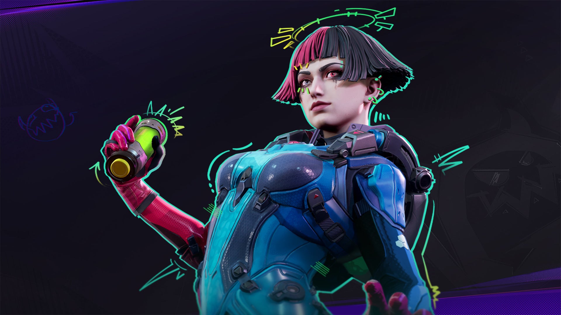 Nitro is a Lancer limited only by your imagination, and her lack of mobility options. Nitro’s Chug Chug deploys a remotely-controlled combat drone that can dish out 20 damage per projectile, but the drone’s greatest strength is its ability to gain intel while Nitro hides in relative safety. Nitro’s The Wall ability enables you to create unique and unexpected sightlines, climb onto otherwise inaccessible areas, block incoming damage, and force enemies to reveal their location as they spray to destroy these surprisingly sturdy shields.