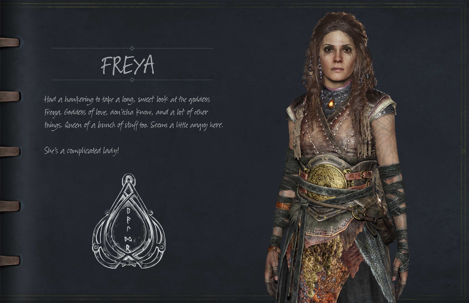 We also know that Freya was once the Valkyrie Queen. With her ability to fight somewhat restored at the beginning of the game as she pursues Kratos and Atreus, are there any particular visual references to her past as a warrior incorporated into her updated look?