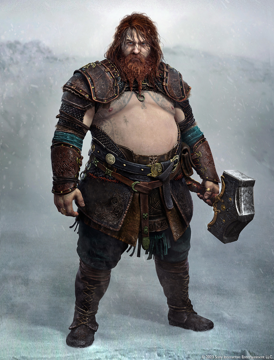 When the team began work on God of War Ragnarök, we started re-exploring what he would look like.  The myths were a big inspiration and depicted the God of Thunder as a great warrior, but also someone who was less than heroic at times, even dangerous and reckless in his actions.