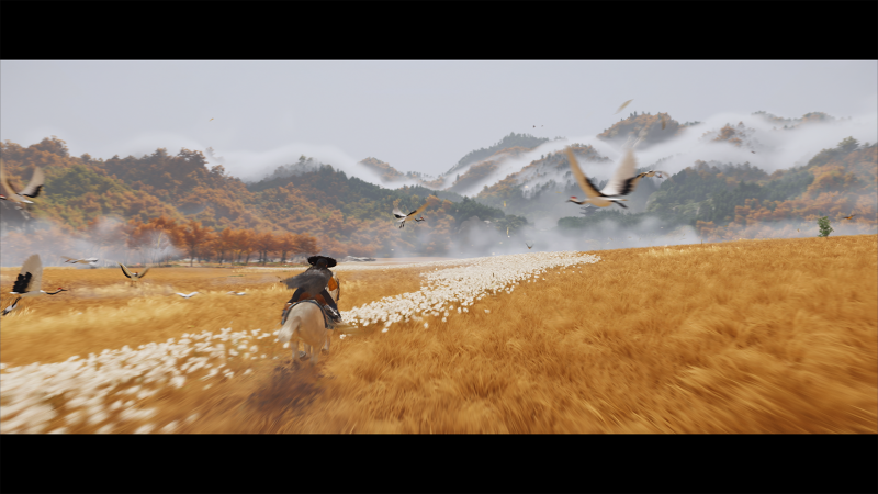 Nate Fox: The wolf shadows you throughout your adventure. It’s a wild animal. It’s definitely not a dog that comes when called. It is an ally that is a representation of the wilderness. Now, Atsu is kind of attuned to the natural world and so there are a great variety of different animals in Ezo that she can kind of get close to and interact with, like a big herd of wild horses you can ride inside of and kind of speed up as you’re amongst them all. It’s a great thing for the player to discover as they’re out exploring Ezo itself. But as far as allies go, the wolf is your prime animal ally.