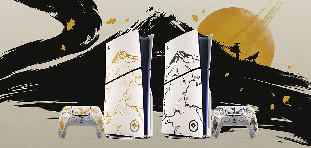 The PS5 console bundle gets you Ghost of Yotei-themed PS5 and DualSense controller, with either black or gold designs on them, as well as a voucher to download a digital copy of the game.