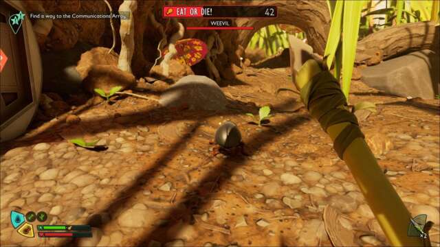 Your starting area has tons of mushrooms. These aren’t very filling, but this is a quick and easy food source to collect early in your game or when you’re starving and in a pinch. Grubs are an easy food source once you get a shovel, and there are also weevils and aphids you can kill.