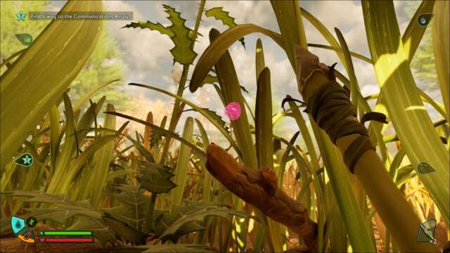 Just like the first game, you want to collect all the materials you can grab in Grounded 2. Pick up items such as pebbles, sap, and clover leaves, and then analyze them to learn new crafting recipes. The tutorial will introduce you to the game’s resource analyzer, which is a machine that lets you analyze resources you’ll find out in the wild.