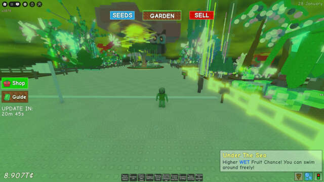 - Sword – a sword will embed itself into the ground somewhere on the map. Players need to find it and mash the use button until it’s free. It will then dart across the sky, applying the Sliced mutation to several fruits.