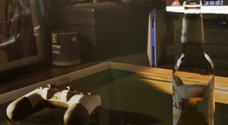In the scene where Lucia arrives home from community service to find Jason snoozing on the sofa, we see various items strewn about the lounge, including what looks like a PlayStation 5 next to the TV and, in the foreground, what looks like a DualSense controller.