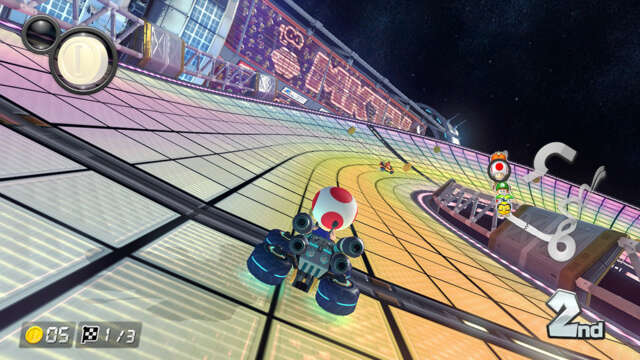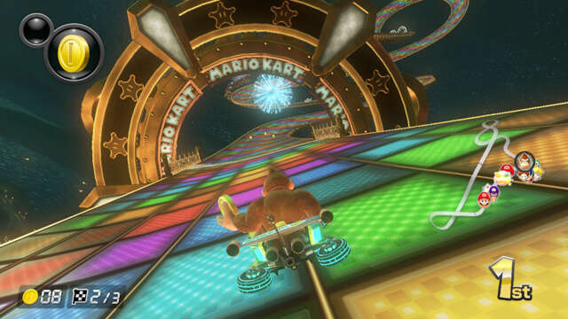 That’s right, the latest Rainbow Road reigns supreme. More than simply a multicolored track set in space, this one really thought through the mechanics of a fictitious space station that seemingly exists specifically for go-kart races. The multi-layered track design has branching points, and the anti-gravity concept at the heart of MK8 is pushed to its absolute limit here with vertigo-inducing twists. Plus the track is just undeniably gorgeous, with its rainbow effect looking like LED lights across the entire race track.