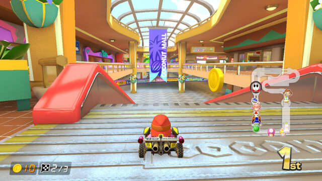 An underappreciated gem, the Coconut Mall is another slice-of-life track that does a lot with a simple concept. While a mall may not seem like an especially powerful setting for a race track, the design does wonders by incorporating elements like escalator boosts, wide thoroughfares broken up by decorative elements, and a trip outside to the parking lot.