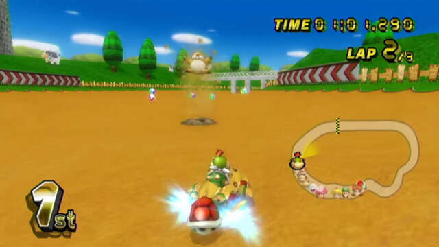 It’s hard to put a finger on why Moo Moo Farm is so memorable. Maybe because it’s such an early track in MK64 that we’ve run through it 500 times, maybe because that banjo riff is a legit bop, but the name kept coming up over and over among the GameSpot staff. This track is relatively straightforward compared to some, but it strikes just the right balance with clever obstacles like Monty Moles, loads of tiny hills, and a well-placed underpass where you can set up traps right before the finish line.