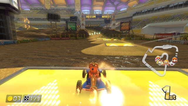 It’s a nice homage for Mario Kart to include some tracks inspired by ExciteBike and rallycross events, and it’s only fitting that the proprietor of such a location would be none other than Wario. Mario’s doppelganger has big monster truck energy and this track expresses that idea to a tee with big ramps and mud and fire hazards.
