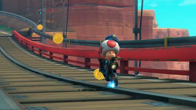Mario Kart World introduced a new grinding mechanic to the series, and it’s absolutely vital to use when aiming for a top time. Whistestop Summit is one of the tracks that makes the best use of this, sending you flying from railroad track to pipe to wall-riding the side of a speeding locomotive rolling alongside the course. Even if you aren’t chasing a new personal best, jumping btween tracks is a rollercoaster of a ride.