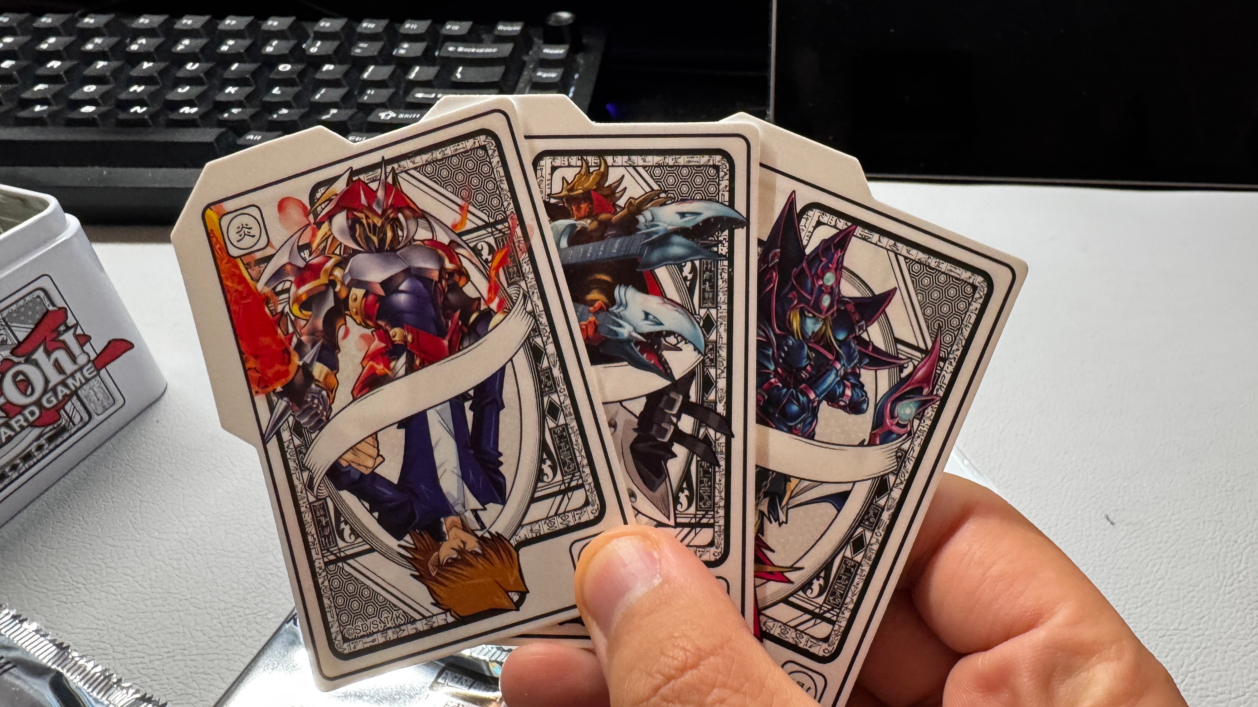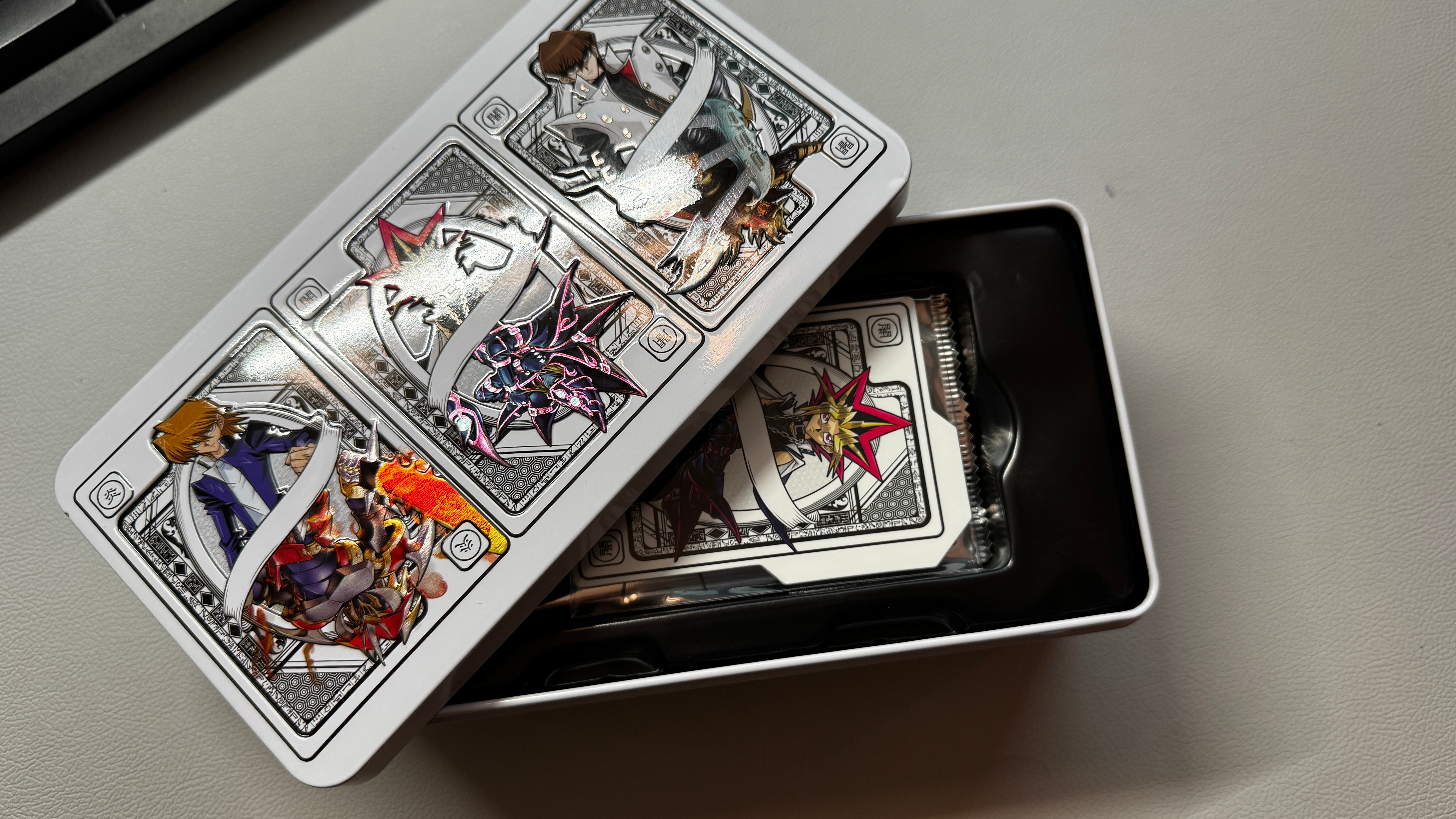 If you do get the tin, you’ll also find a trio of card dividers that call to mind classic playing cards with their two-sided designs. There’s one for Yugi, Kaiba, and Joey, with their respective monsters on the opposite side of the card, and the designs are inverted on the other side.