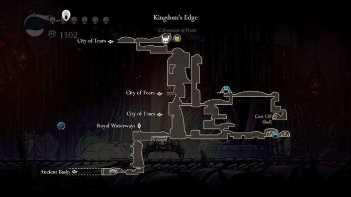- Starting in Kingdom’s Edge’s central cliff, go to the right, where a Boofly is floating above. Head up the large room using the small platforms in the middle. Upon reaching the last of the small platforms, jump towards the large platform on the right, and take the exit.