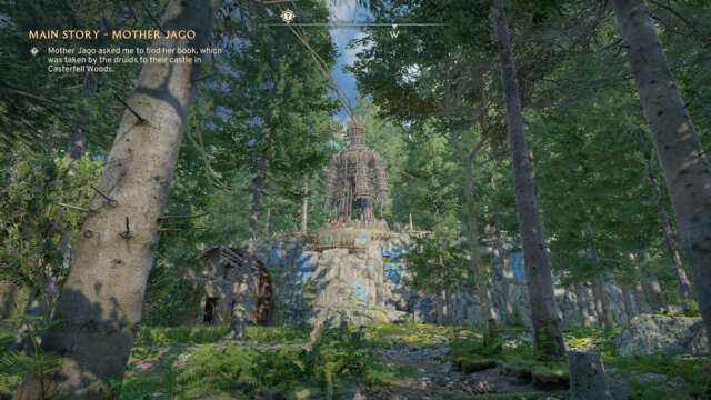 Specifically, you need to travel to the “Druid’s Camp” location found at the very southwestern part of the Casterfell Woods map. Here, the Druids have erected a large, wooden statue of some deity up on a cliff. There also happen to be dozens of Druids in and around the entire area, so you have to choose whether to be stealthy or go in with a full frontal assault in mind. The easiest method I found was to use a bow and silently pick off Druids.