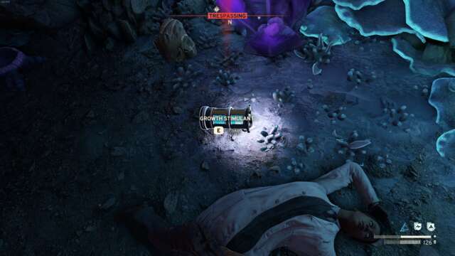 Go past the plant on its left side to head up a new path and find the Growth Stimulant sitting on the ground next to a dead scientist. With the Growth Stimulant, head out the way you came in, making sure to avoid the plant as best as possible, and stay in the Interchange.
