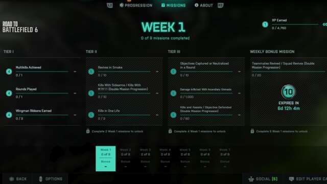 The publisher says you unlock these tiers by gaining XP and completing weekly missions to earn the points required to progress through each tier of the pass. Every week, a limited-time bonus mission is also available to unlock, and completion of this mission will provide additional points.