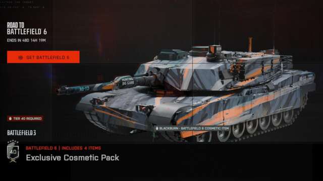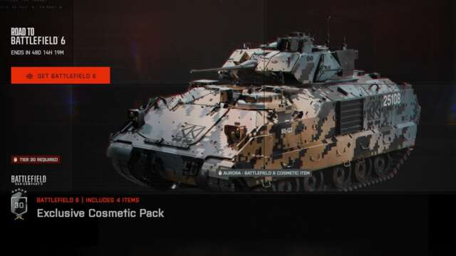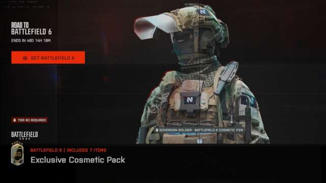 The free pass doesn’t detail all the Battlefield 6 exclusive items you can earn, but there are six different cosmetic packs for the game, and they’re unlocked as follows:
