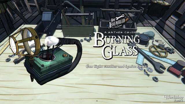 The Burning Glass can be crafted via the Workshop, which you should always draft in every run. It requires the following tools: