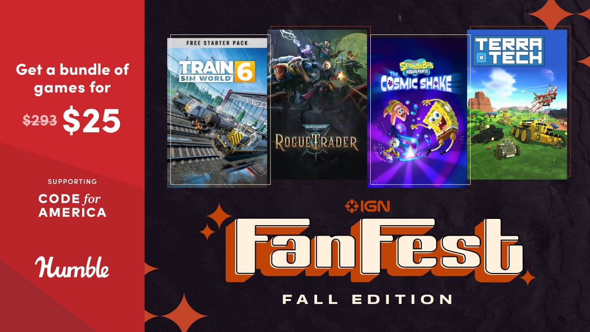 In celebration of IGN Fan Fest 2025: Fall Edition, Humble Bundle is releasing a special bundle that, for at least $25, will get you a collection of 8 games and DLC worth $293, including Train Sim World 6, Warhammer 40,000: Rogue Trader, SpongeBob SquarePants: The Cosmic Shake, and TerraTech.