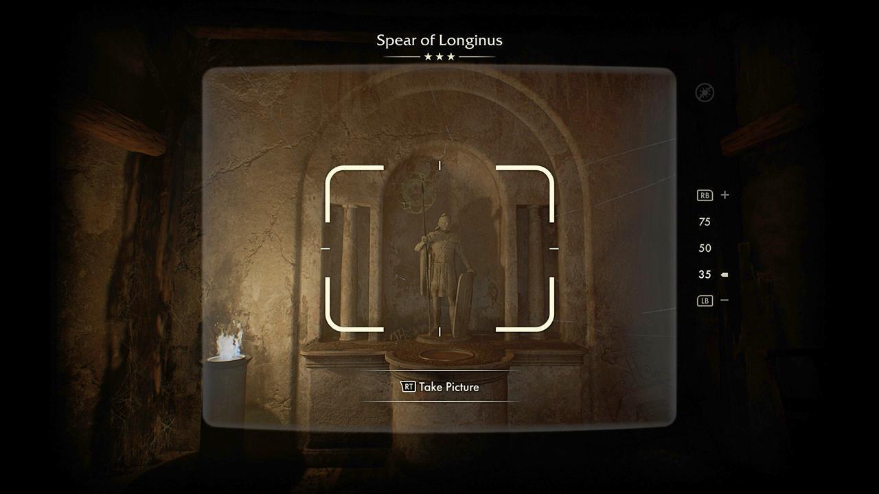 At the bottom of this area, you’ll see the Indiana Jones and the Great Circle Five Sacred Wounds puzzle. We suggest using the camera to take photos of all the murals and statues. This nets you additional Adventure Points. Here are the ones that are in the area: