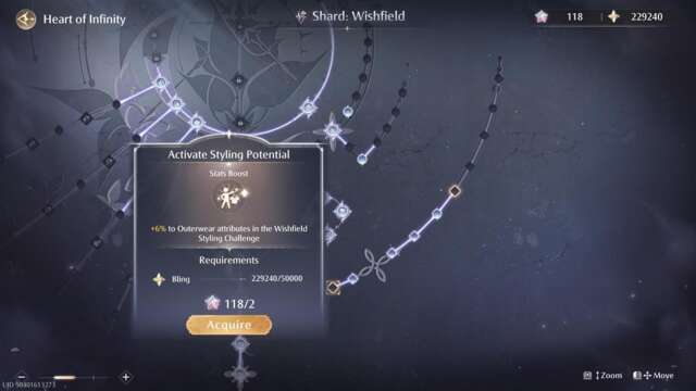 If you want to succeed in Infinity Nikki’s Mira Crown and Styling Contests, be sure to take a look at the Heart of Infinity menu (“I” key). The section along the right-hand side has several perks that provide a permanent percentage-based increase to your score from several outfit parts and accessories. These can be unlocked by spending bling (i.e. gold) and Whimstars.