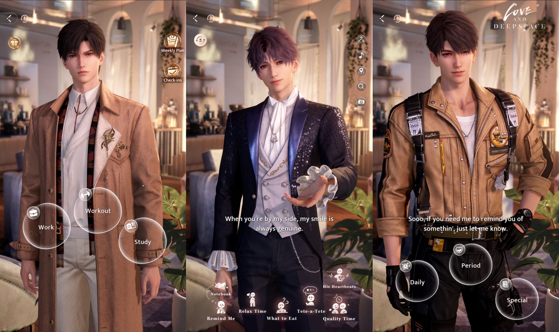 The game places your created character in the future, after humanity receives a mysterious message from Deepspace that coincided with the arrival of aggressive creatures known as the Wanderers. As an Evolver with superhuman abilities, you set off on a thrilling journey. Along the way, you’ll battle these monsters and cross paths with fellow Evolvers, with whom you can form intimate relationships. For Love and Deepspace, the concepts of love and its futuristic world setting were more than just themes — they were the foundation for every design decision.