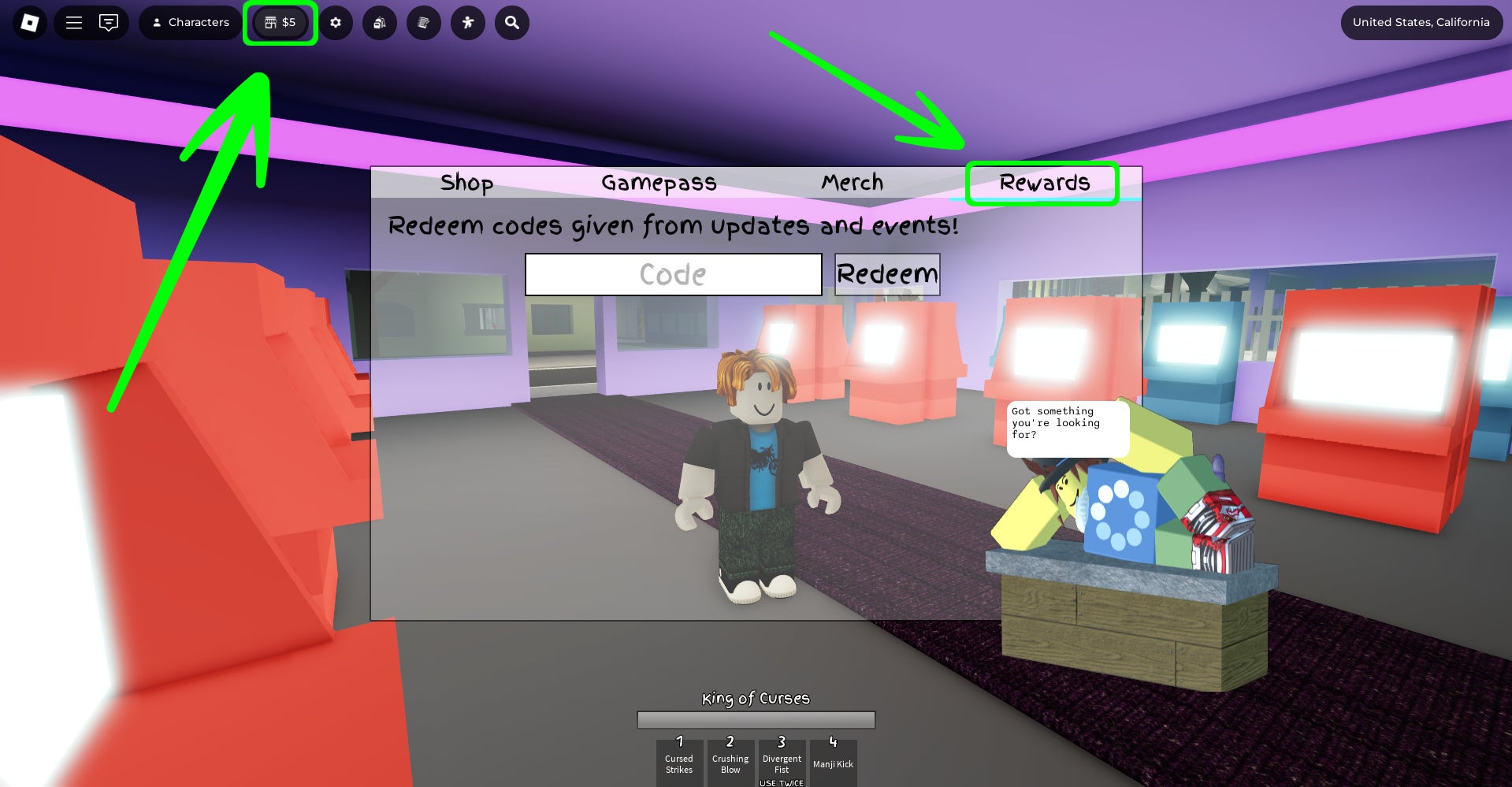 To redeem Jujutsu Shenanigans codes, boot up the game and, once you’re in, follow the steps below: