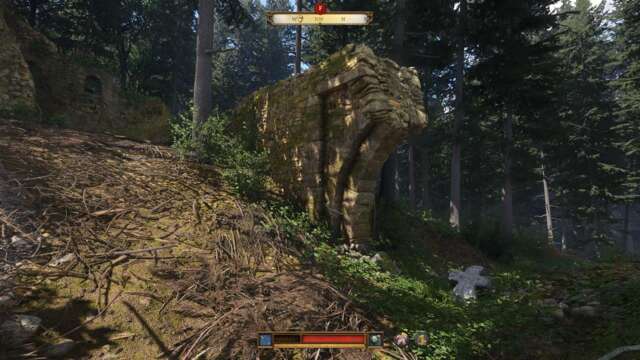 As you approach the ruins, you’ll see a stone cross on the ground. The cross is pointing north, so walk straight in that direction. Do watch out for wolves that might attack you at this point.