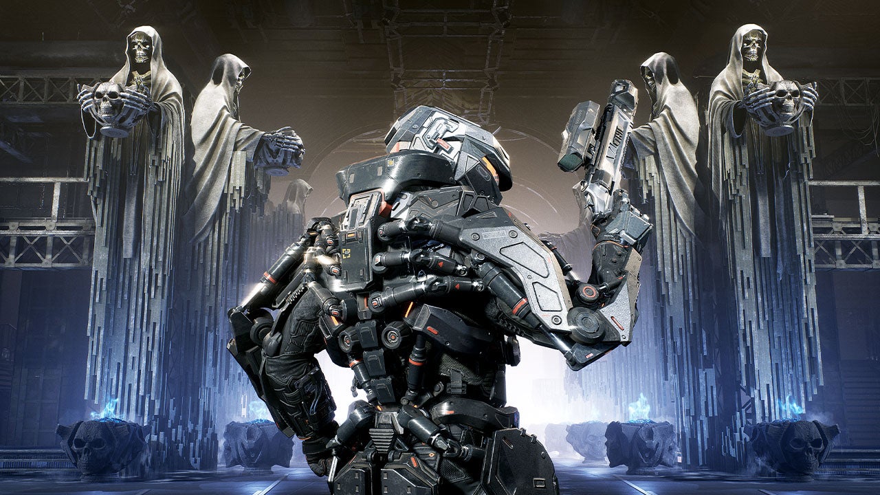 As a PMC, you are, of course, paid for completing missions – but while there are things to buy between them, the progression is badly underbaked at this point. There aren’t enough items or upgrades for sale in the first place, and the stuff that is here isn’t very interesting. You could buy one of a very small number of generic guns, or invest in either of the two alternate versions of your exosuit’s head, arms, torso, and legs, each of which have differences like improved cooldowns or increased med kit capacity. But those effects are all so small that it’s hard to feel a need for any of them.