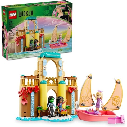 The Lego Emerald City & Kiamo Ko Castle play set lets you build miniaturized versions of Glinda’s room in the Emerald City and Elphaba’s personal chambers in Kiamo Ko Castle. The two buildings fold out to reveal multiple hidden compartments. The set also includes minifigures of Elphaba, Glinda, and a Flying Monkey, plus a handful of accessories.