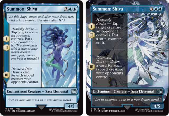 Summons will be represented as a new card combination: Saga Creatures. Cards like Shiva will be able to attack and block like creatures, while also moving through chapters like Sagas, and when the final chapter hits, it will be sacrificed.