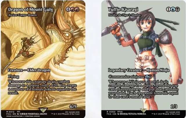 Final Fantasy: Through The Ages is a 60-card bonus sheet of reprints from the MTG universe featuring official art from the Final Fantasy franchise through the years. The first two revealed were Yuffie andthe Dragon of Mount Gulg.