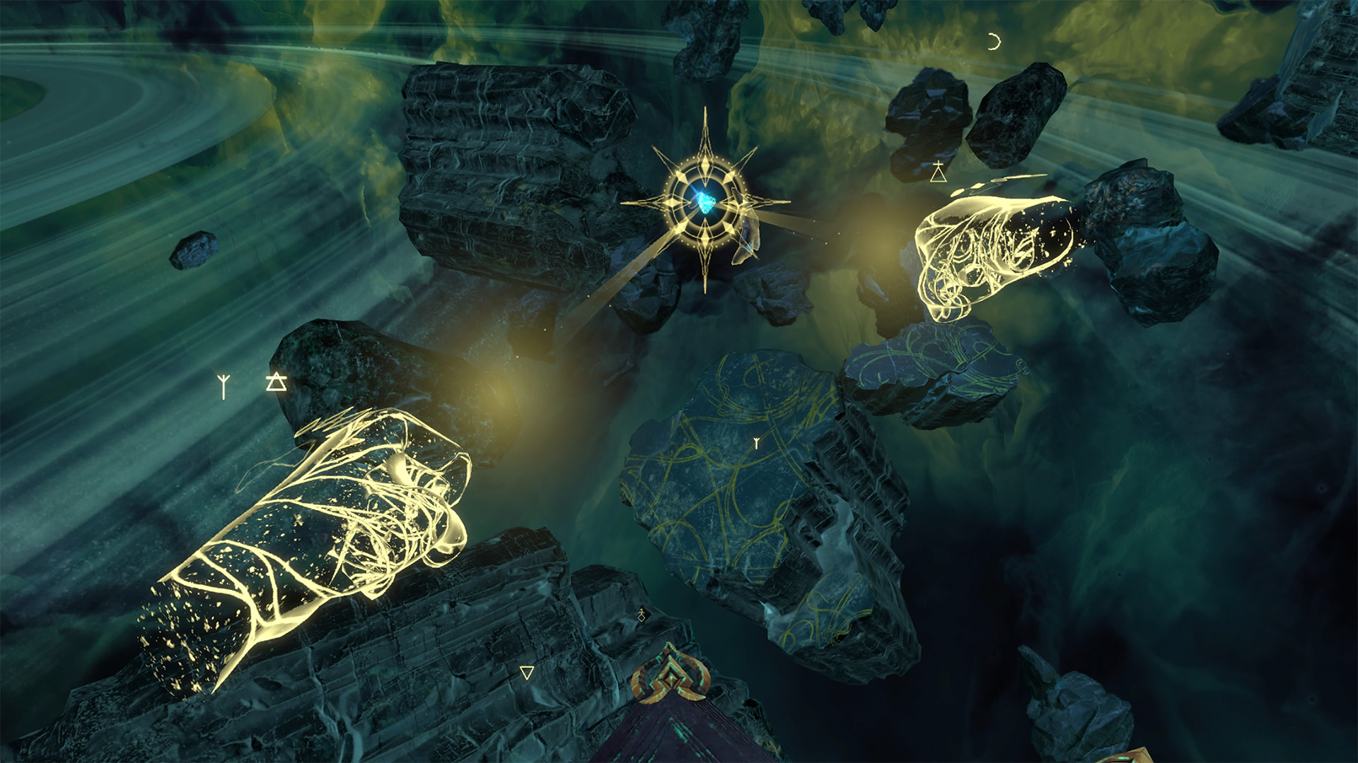 Hidden in the 36 levels are ancient ruins that the player can reactivate to unlock pieces of the lore.