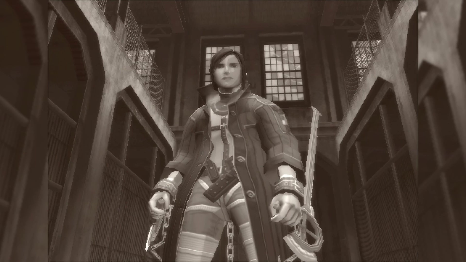 Without any explanation we are tossed into a barebones, black-and-white hack-and-slash sequence in control of a hook-sword wielding anime hunk. There’s a textured warehouse environment, a horde of zombies with rudimentary AI, and even a basic “heating up” mechanic, but the action ends after just a few minutes of mayhem and Snake Eater returns to your regularly-scheduled adventure.