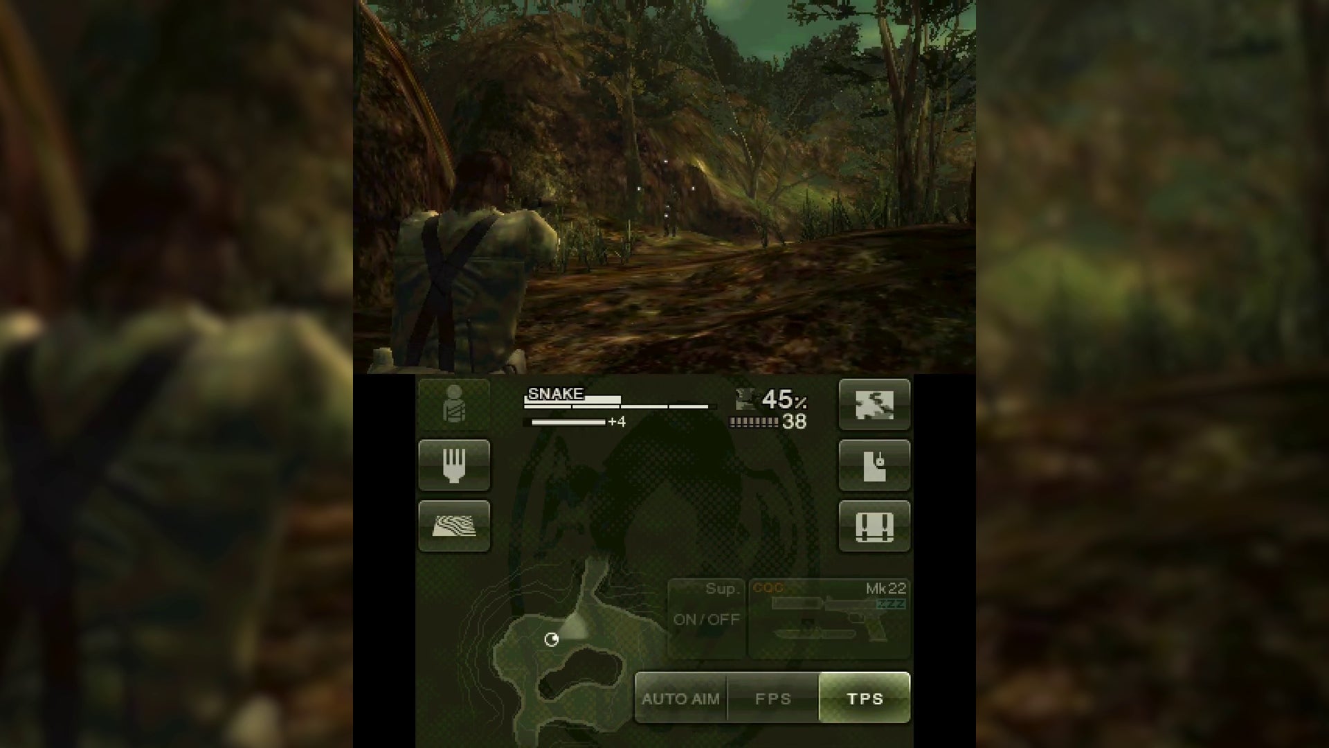 The color scheme and character models are slightly altered, and new button prompts demystify the confusing CQC mechanics. Collectible Kerotan dolls have been replaced by Yoshi. The game takes full advantage of the 3DS’s hardware, using the onboard camera to create your own PhotoCamo, while the secondary touch screen does wonders for MGS3’s notoriously convoluted menu system.