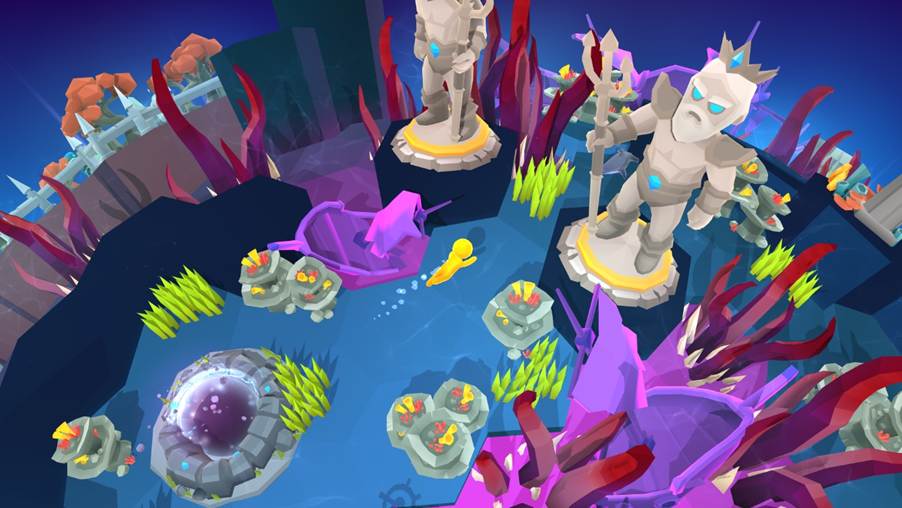 Now, about those sharks. Sure, you could attempt an early swim to distant islands. But the universe loves punishing overconfidence. Get eaten and kiss your Booster Card goodbye. Pro tip: Swim faster than your co-op partner. It’s every explorer for themselves. Super Pro Tip: you can catch a shark!