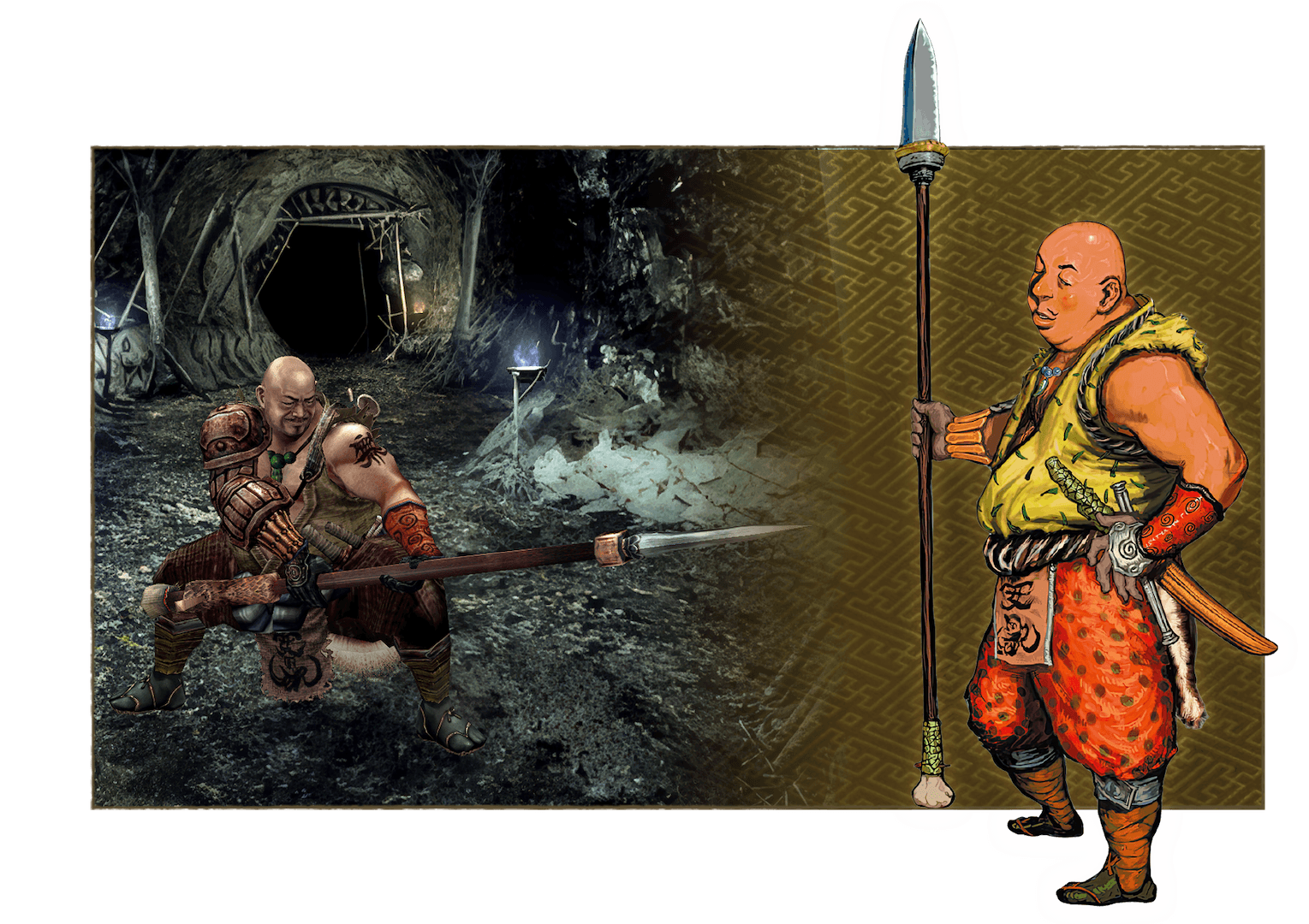 The protagonist of this game is a fierce young samurai, constantly moving from one bloody and mucky fight to the next. In order to cement this image of a striking samurai, Capcom has turned to none other than the late, iconic Japanese samurai movie star Toshiro Mifune to serve as the face model for this rendition of Miyamoto Musashi.
