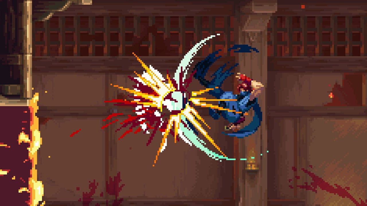 Good news for me, then, because beating the demo unlocked a hard version of one of the levels I’d just played. And, uh… it’s a lot harder. There are new enemies! Everything’s on fire! Developer The Game Kitchen has put in something for the sickos, and I appreciate it.