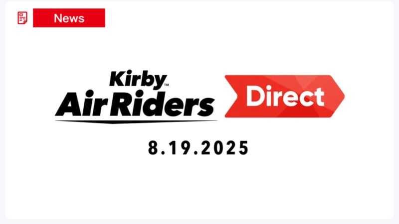 “Tune in on Tuesday, August 19, for a livestreamed Kirby Air Riders Direct featuring about 45 minutes of information about the upcoming Nintendo Switch 2 game.”